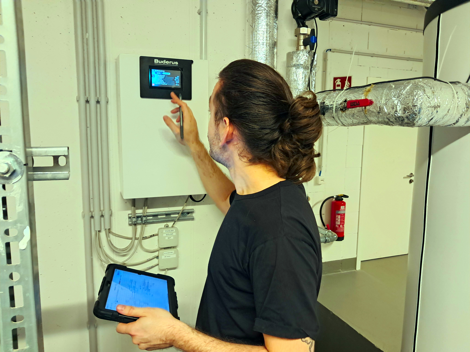 Für einen Neubau mit fossilen und erneuerbaren Wärmeerezeugungskomponenten haben wir die Datenerfassung realisiert. Auf Basis der Verbrauchsdaten und der Vor- und Rücklauftemperaturen der Wärmemengenzähler analysieren wir das Betriebsverhalten und beschreiben auf dieser Datengrundlage Betriebszustände für die optimale Einbindung erneuerbarer Energien. Das System wurde mit drei Erzeugern umgesetzt: einem Gasbrennwertkessel, einer Wärmepumpe und einer Solarthermieanlage. Die Verteilung findet in zwei hydraulisch voneinander getrennten Verteilern für unterschiedliche Temperaturniveaus statt. Die Herausforderung besteht darin, zu jeder Zeit alle Verbraucher – inklusive Trinkwarmwasser und Lüftungsanlage – möglichst mit erneuerbarer Wärme auf dem notwendigen Temperaturniveau zu versorgen.
